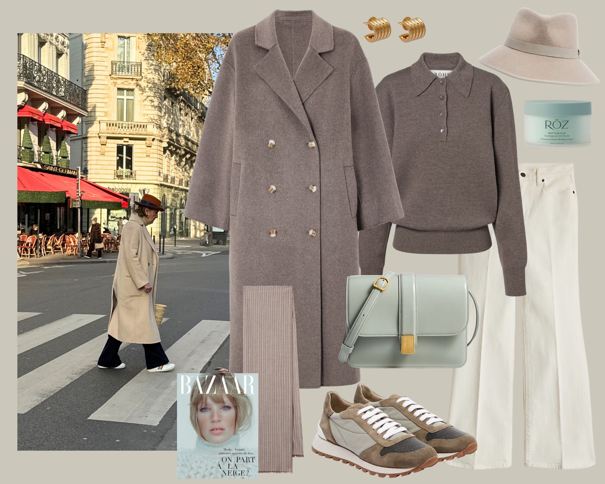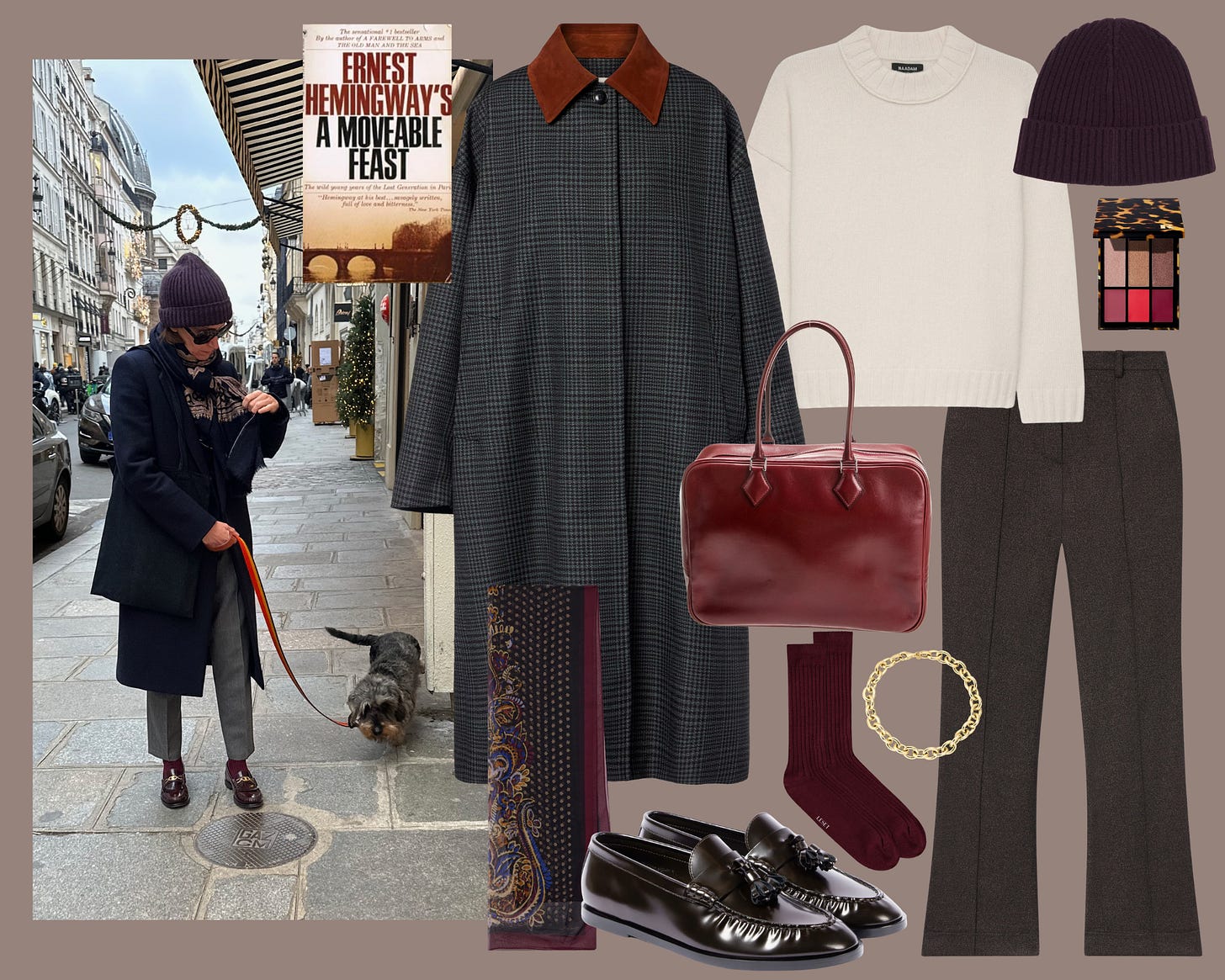For shoes, I’d choose a tasseled loafer from The Row but this burgundy loafers would work too. And these. Bare ankles is a no-no in the winter and will give you away as an American so I always advise wearing sock like these ribbed wool socks.