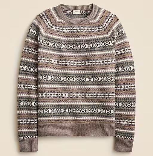 Most Fair Isle sweaters are scratchy wool so gift yourself or another person on your list this chic Cashmere Diamond Fair Isle Sweater for the holidays.