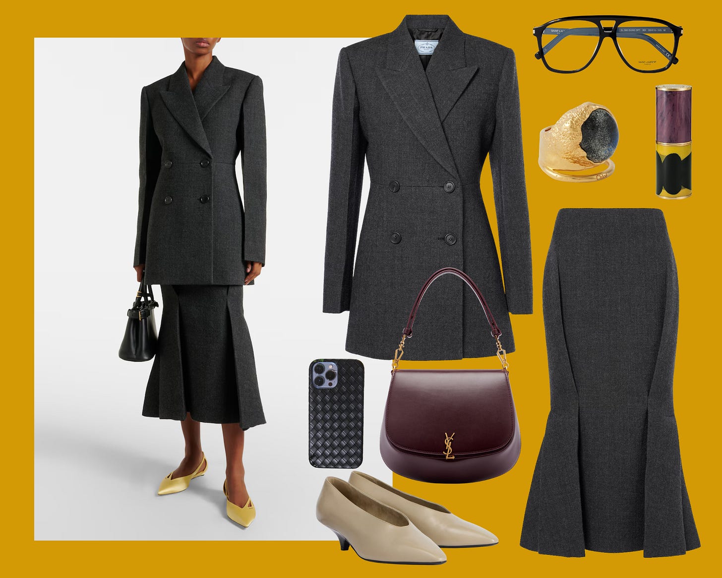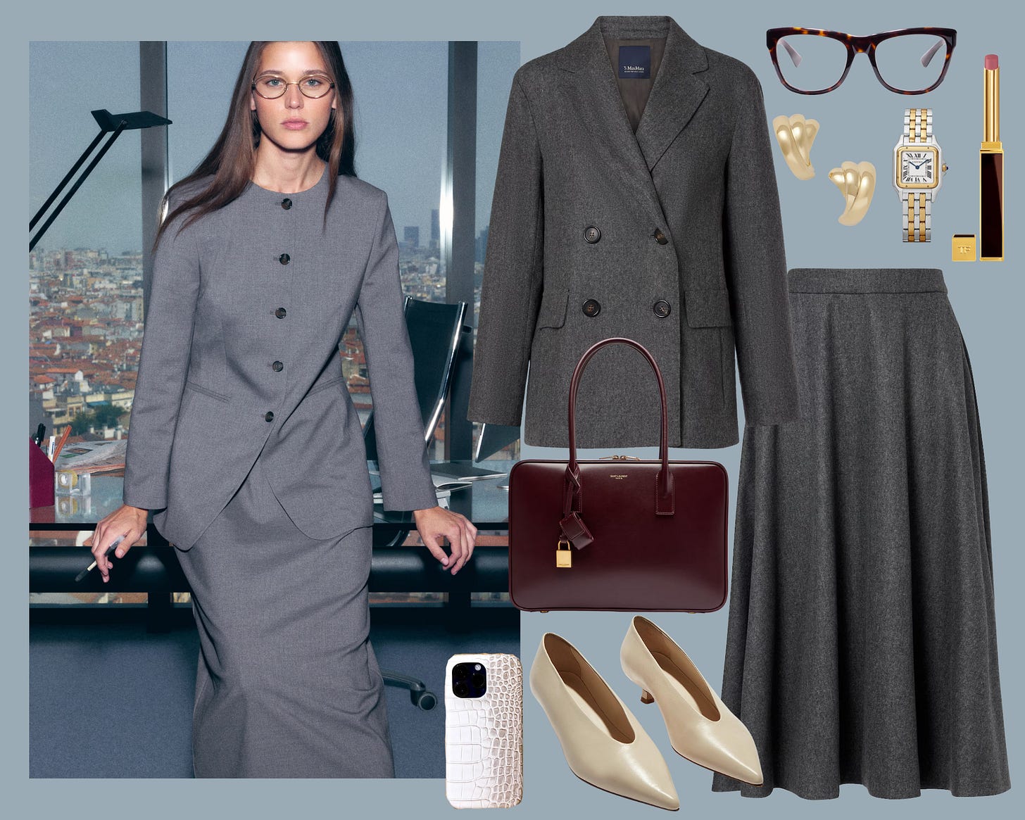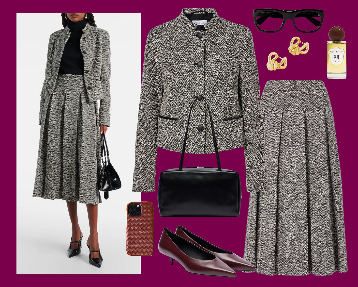 I love grey for fall and winter since it’s not as harsh as black. It also doesn’t show lint as much as black and looks good with my honey/caramel colored hair. This is why I immediately ordered the ‘S Max Mara Flannel Blazer and matching Flannel Midi Skirt as soon as I saw it on Mytheresa.