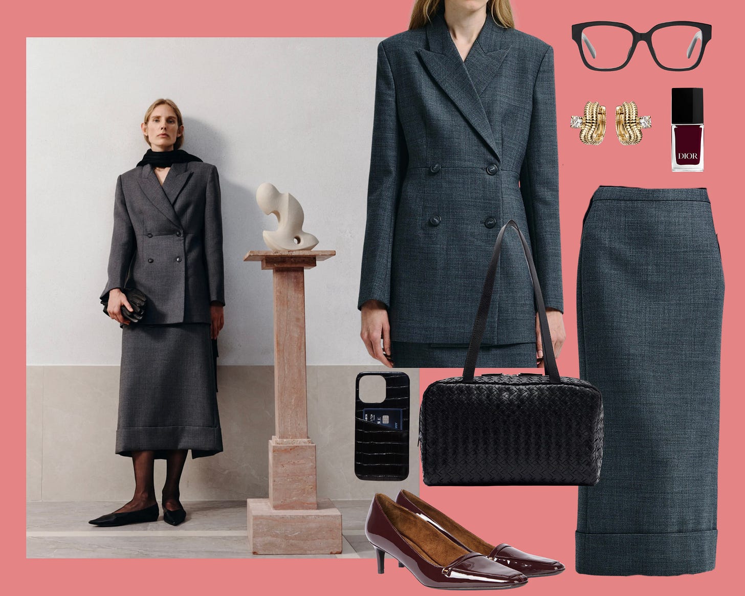 Unfortunately, The H&M Long Jacket and matching Midi Skirt on the left are already sold out but you can bookmark them in case they come back into stock. I’m so glad I didn’t snooze on this set because it has the perfect 90s Armani/Calvin Klein feeling for an amazing price.